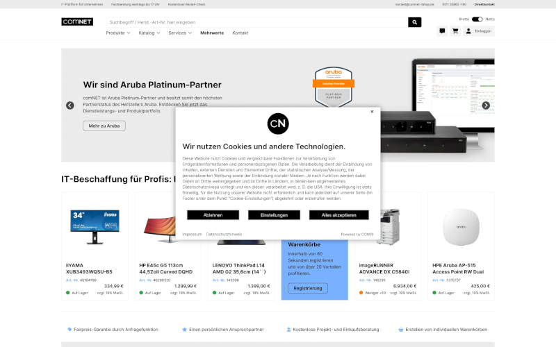 Das Herzstück von CCM19 für Ihre Elektrogroßhändler Webseite, Onlineshop oder sonstige Applikation - der Cookie Banner für Elektrogroßhändler. Mit diesem Banner realisieren Sie auf Ihrer Webseite die notwendige Zustimmung zum Setzen von diversen Cookies und zum ausführen von (Tracking)Skripten.