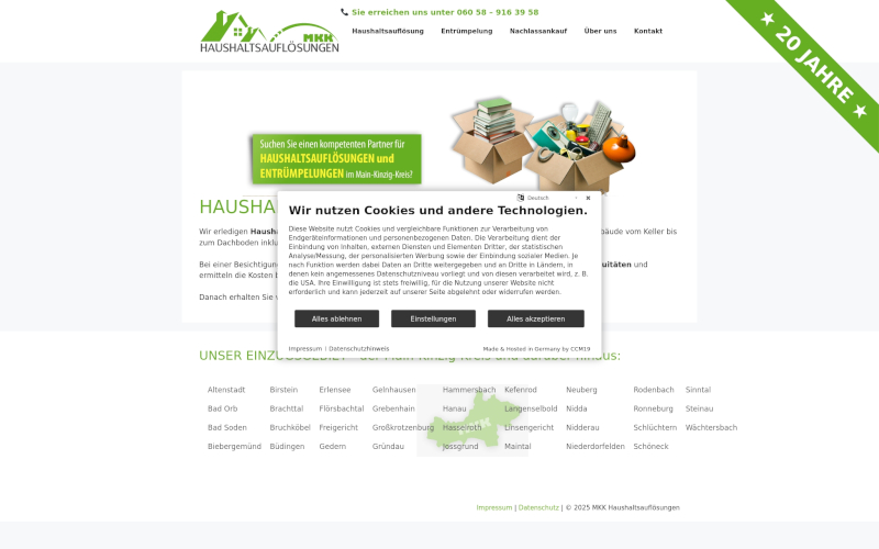 Entdecken Sie CCM19: Das ultimative Cookie Consent Manager Tool, speziell für Entrümpler entwickelt. Datenschutz optimieren, mehr Zustimmungen sichern! Mit CCM19, der führenden Lösung im Bereich Cookie Consent Manager, speziell für die Entrümpler-Branche, erreichen Sie mehr. Deutschsprachiger Support garantiert!