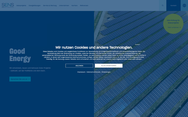 Entdecken Sie CCM19, Ihren idealen Cookie Consent Manager speziell für die Erneuerbare Energien Branche. Datenschutz neu definiert! Erfahren Sie, wie CCM19 Ihre Zustimmungsraten optimiert - perfekt abgestimmt auf Erneuerbare Energien. Starten Sie jetzt!