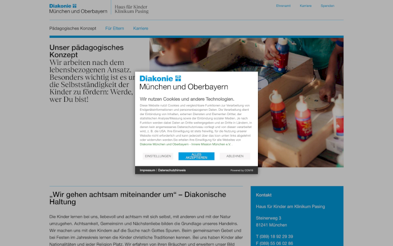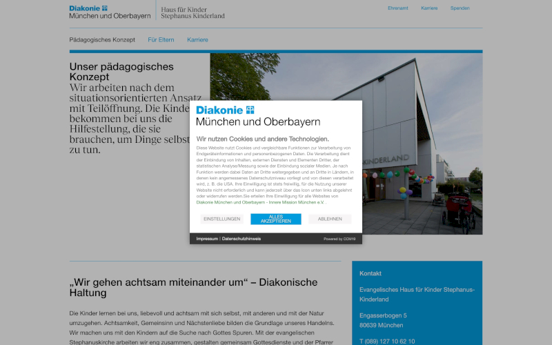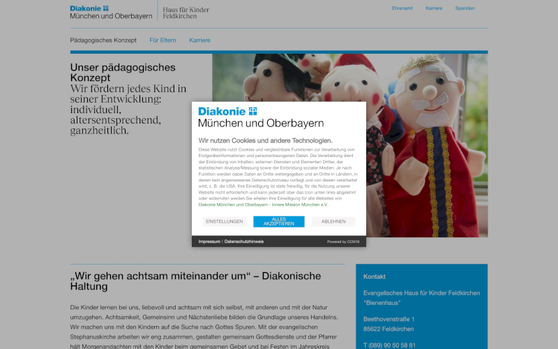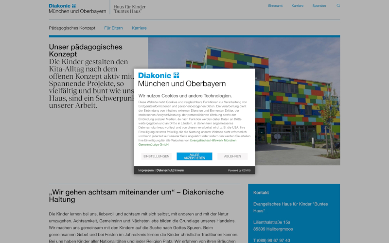 Das Herzstück von CCM19 für Ihre Erziehung & Bildung Webseite, Onlineshop oder sonstige Applikation - der Cookie Banner für Erziehung & Bildung. Mit diesem Banner realisieren Sie auf Ihrer Webseite die notwendige Zustimmung zum Setzen von diversen Cookies und zum ausführen von (Tracking)Skripten.