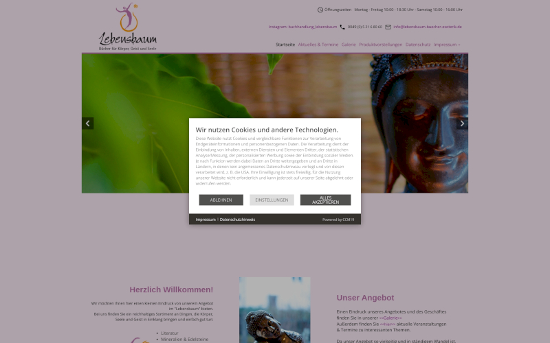 Das Herzstück von CCM19 für Ihre Esoterik Webseite, Onlineshop oder sonstige Applikation - der Cookie Banner für Esoterik. Mit diesem Banner realisieren Sie auf Ihrer Webseite die notwendige Zustimmung zum Setzen von diversen Cookies und zum ausführen von (Tracking)Skripten.