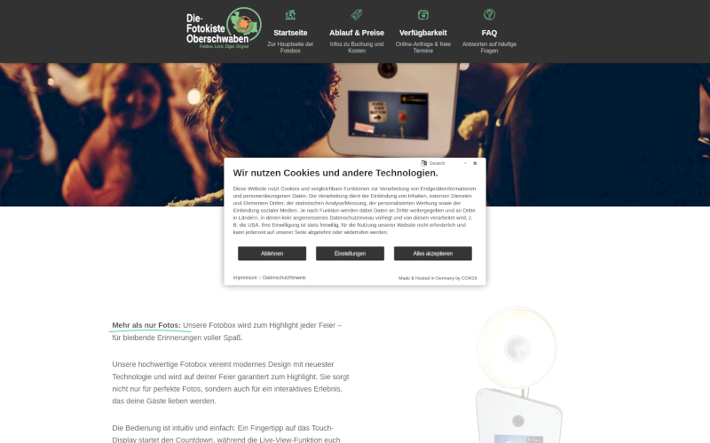 Entdecken Sie CCM19: Ihren spezialisierten Cookie Consent Manager für Eventveranstalter. Maßgefertigte Datenschutzlösung! Optimieren Sie Ihre Website mit CCM19 für höhere Consent-Raten – perfekt abgestimmt auf Eventveranstalter. Support auf Deutsch inklusive!