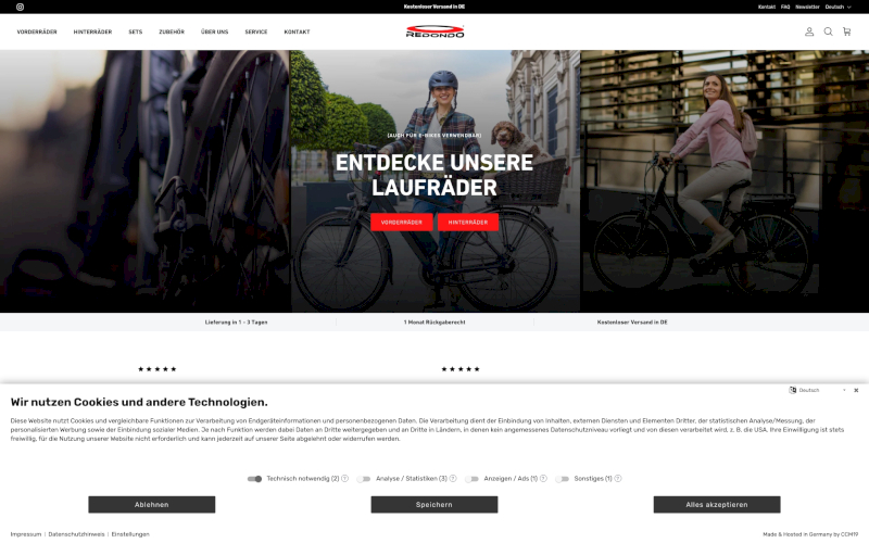 Entdecken Sie CCM19, den führenden Cookie Consent Manager speziell für Fahrradläden. Steigern Sie die Zustimmungsraten! Profitieren Sie von sicherer Datenhandhabung ohne Datenübertragung ins Ausland und individuellen Lösungen für Ihre Branche.