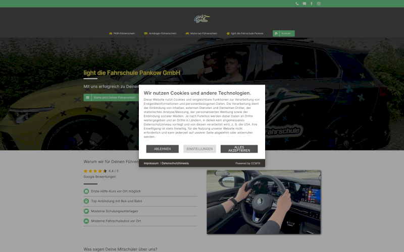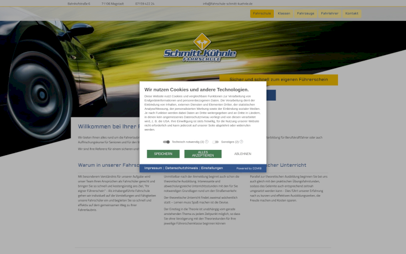 Entdecken Sie CCM19, den führenden Cookie Consent Manager speziell für Fahrschulen. Optimieren Sie Ihren Datenschutz! CCM19: Maßgeschneidert für Fahrschulen, sichert optimale Zustimmungsraten & deutschen Datenschutz – ohne Datenabfluss ins Ausland.