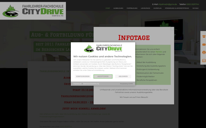 Einrichtung und Anpassung mit CCM19 für Fahrschulen