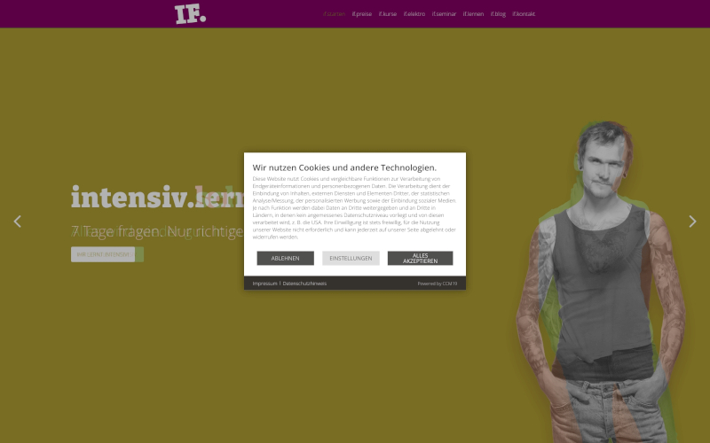 Das Herzstück von CCM19 für Ihre Fahrschulen Webseite, Onlineshop oder sonstige Applikation - der Cookie Banner für Fahrschulen. Mit diesem Banner realisieren Sie auf Ihrer Webseite die notwendige Zustimmung zum Setzen von diversen Cookies und zum ausführen von (Tracking)Skripten.