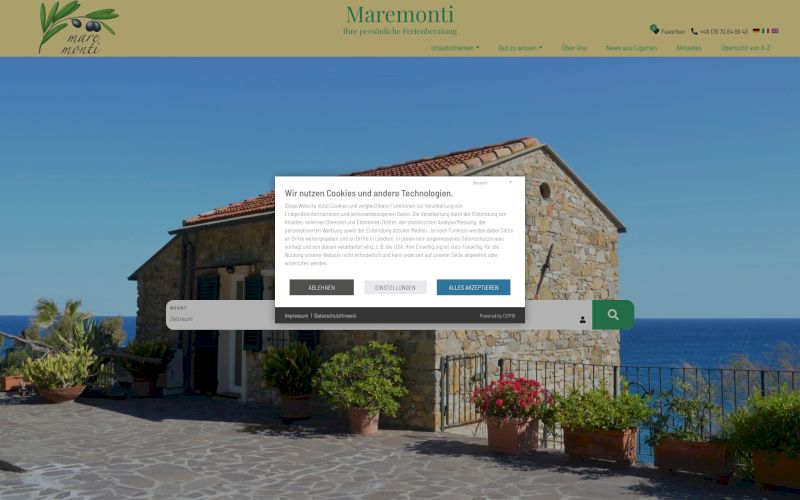Das Herzstück von CCM19 für Ihre Ferienhäuser Webseite, Onlineshop oder sonstige Applikation - der Cookie Banner für Ferienhäuser. Mit diesem Banner realisieren Sie auf Ihrer Webseite die notwendige Zustimmung zum Setzen von diversen Cookies und zum ausführen von (Tracking)Skripten.