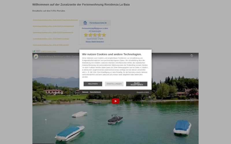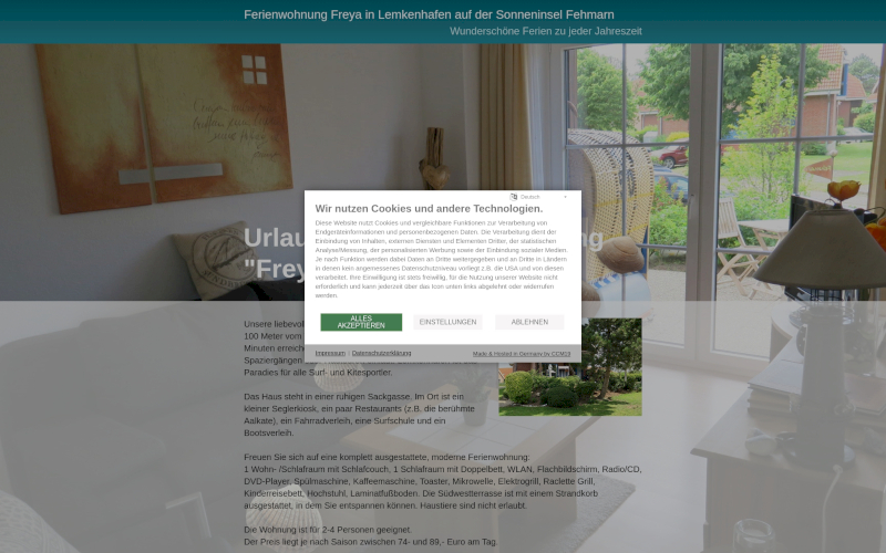 Entdecken Sie CCM19: Der maßgeschneiderte Cookie Consent Manager für Ferienwohnungen. Optimieren Sie jetzt Ihre Zustimmungsquoten! Wählen Sie Sicherheit & Effizienz – ohne Datenübertragung ins Ausland. Speziell für Ferienwohnungen entwickelt. Vertrauen Sie auf unseren Experten-Support.