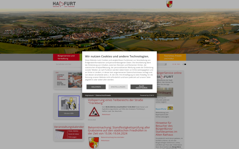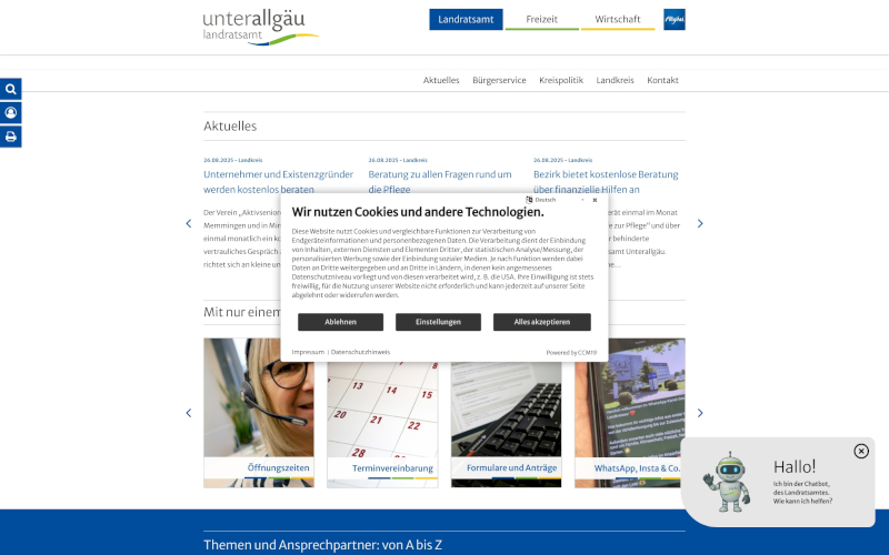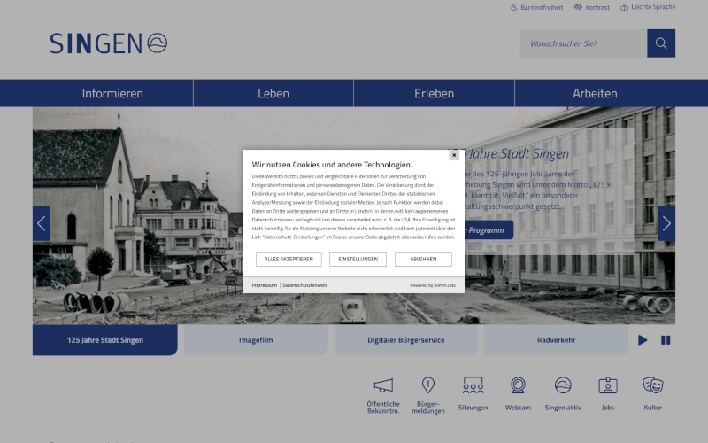 Das Herzstück von CCM19 für Ihre Öffentliche Hand Webseite, Onlineshop oder sonstige Applikation - der Cookie Banner für Öffentliche Hand. Mit diesem Banner realisieren Sie auf Ihrer Webseite die notwendige Zustimmung zum Setzen von diversen Cookies und zum ausführen von (Tracking)Skripten.