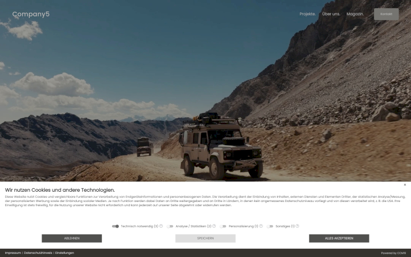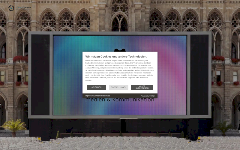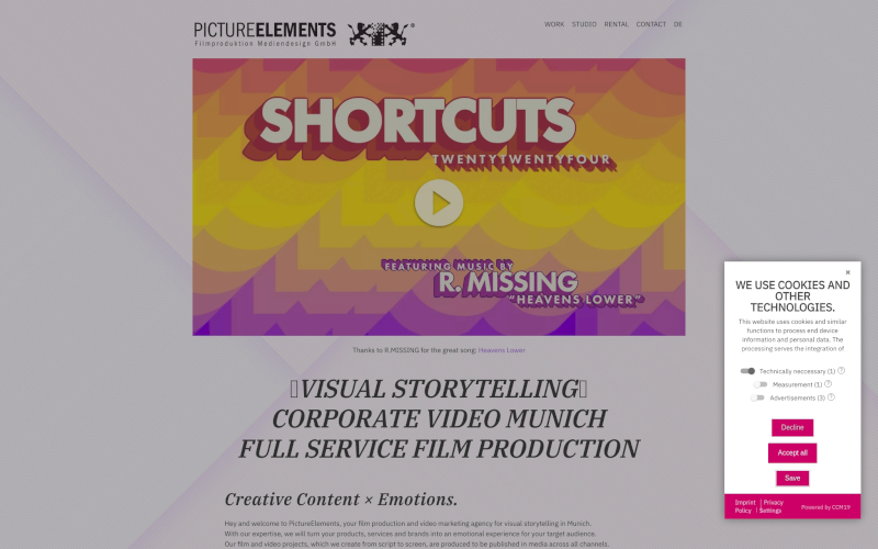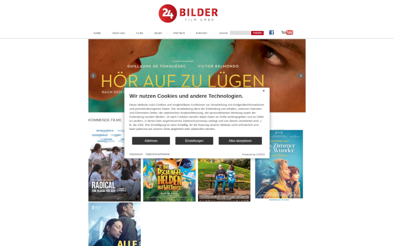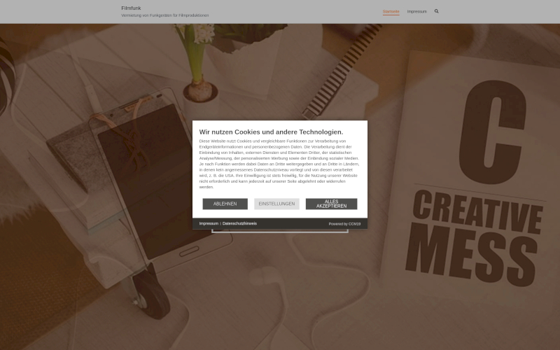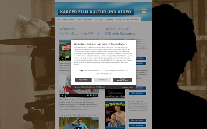 Das Herzstück von CCM19 für Ihre Filmproduzenten Webseite, Onlineshop oder sonstige Applikation - der Cookie Banner für Filmproduzenten. Mit diesem Banner realisieren Sie auf Ihrer Webseite die notwendige Zustimmung zum Setzen von diversen Cookies und zum ausführen von (Tracking)Skripten.