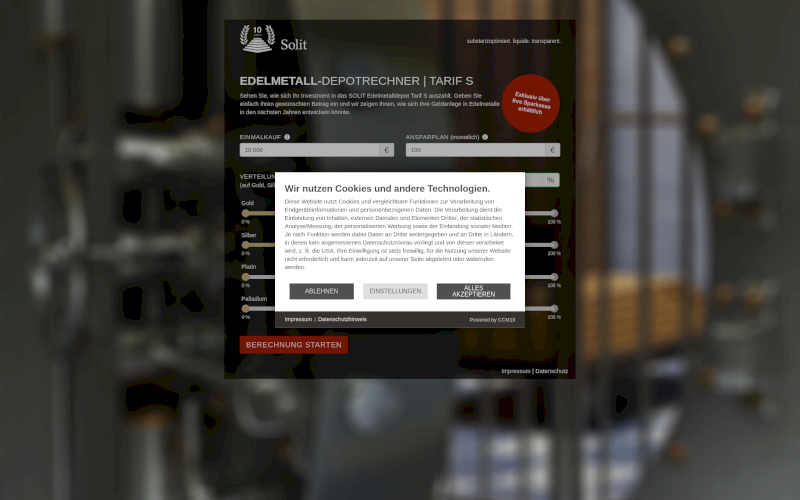 Das Herzstück von CCM19 für Ihre Finanzberatung Webseite, Onlineshop oder sonstige Applikation - der Cookie Banner für Finanzberatung. Mit diesem Banner realisieren Sie auf Ihrer Webseite die notwendige Zustimmung zum Setzen von diversen Cookies und zum ausführen von (Tracking)Skripten.