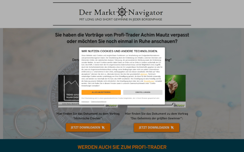Cookie Banner für Finanzberatung