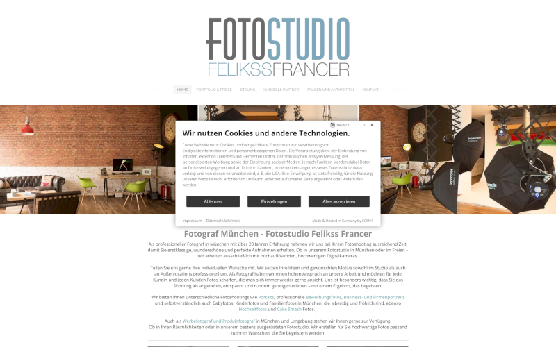 Entdecken Sie CCM19, den Cookie Consent Manager, maßgeschneidert für Fotostudios. Optimieren Sie jetzt Ihren Datenschutz! Profitieren Sie von mehr Besucherzustimmungen, sicherer Datenhandhabung ohne Übertragung ins Ausland und individueller Beratung – speziell für Ihre Branche entwickelt.