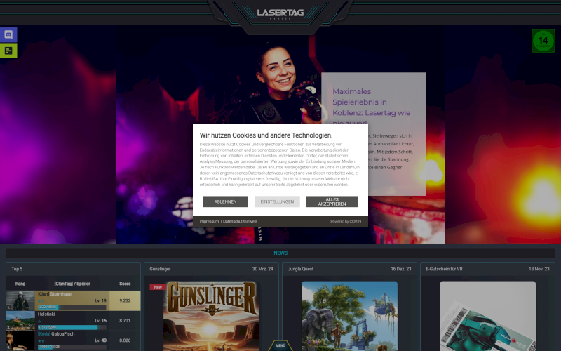 Das Herzstück von CCM19 für Ihre Freizeitunternehmen Webseite, Onlineshop oder sonstige Applikation - der Cookie Banner für Freizeitunternehmen. Mit diesem Banner realisieren Sie auf Ihrer Webseite die notwendige Zustimmung zum Setzen von diversen Cookies und zum ausführen von (Tracking)Skripten.