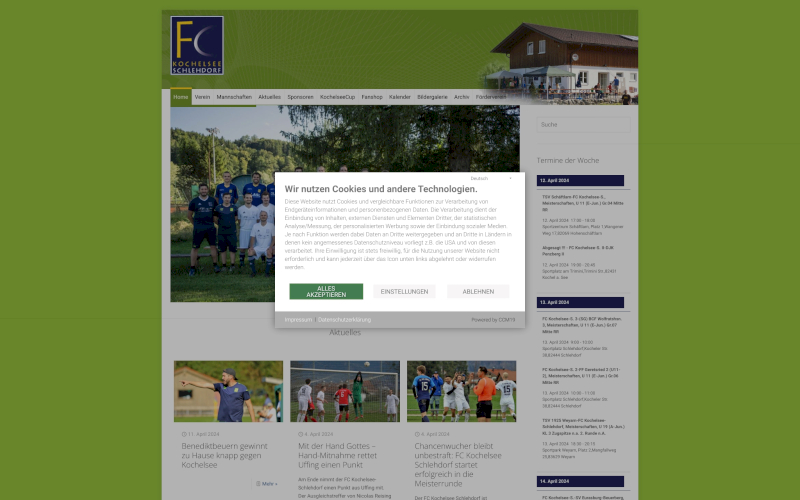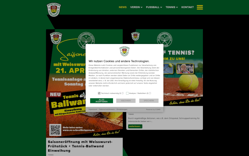 Das Herzstück von CCM19 für Ihre Fußballvereine Webseite, Onlineshop oder sonstige Applikation - der Cookie Banner für Fußballvereine. Mit diesem Banner realisieren Sie auf Ihrer Webseite die notwendige Zustimmung zum Setzen von diversen Cookies und zum ausführen von (Tracking)Skripten.