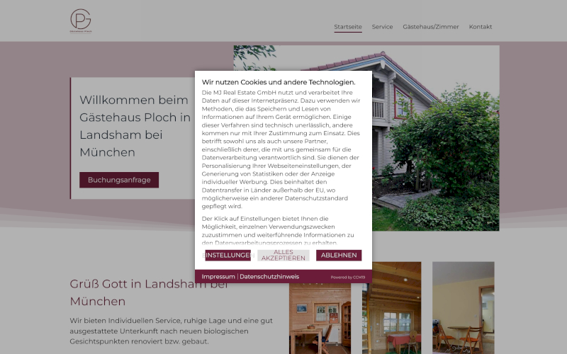 Das Herzstück von CCM19 für Ihre Gästehäuser Webseite, Onlineshop oder sonstige Applikation - der Cookie Banner für Gästehäuser. Mit diesem Banner realisieren Sie auf Ihrer Webseite die notwendige Zustimmung zum Setzen von diversen Cookies und zum ausführen von (Tracking)Skripten.