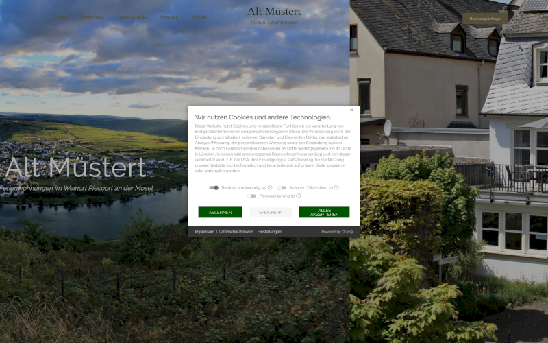Sind Sie auf der Suche nach dem perfekten Cookie Consent Manager (CCM) für Ihre Website im Gasthofgewerbe? In heutigen digitalen Zeiten ist die Wahrung der Privatsphäre Ihrer Online-Besucher von höchster Bedeutung. Mit CCM19 bieten wir Ihnen eine Lösung, die nicht nur Ihre Seite DSGVO- und TDDDG-konform macht, sondern sich auch ideal für das Gasthofgewerbe eignet.