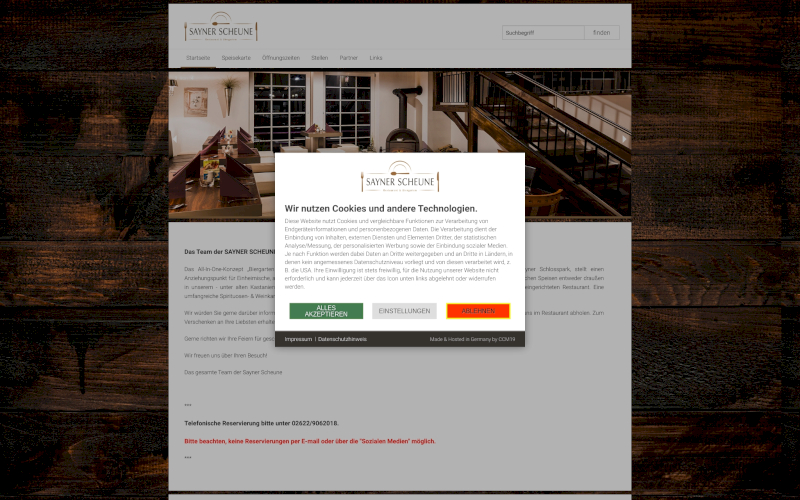 Das Herzstück von CCM19 für Ihre Gasthöfe Webseite, Onlineshop oder sonstige Applikation - der Cookie Banner für Gasthöfe. Mit diesem Banner realisieren Sie auf Ihrer Webseite die notwendige Zustimmung zum Setzen von diversen Cookies und zum ausführen von (Tracking)Skripten.