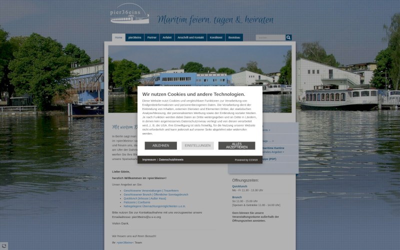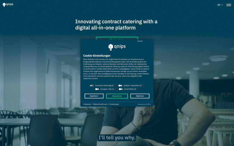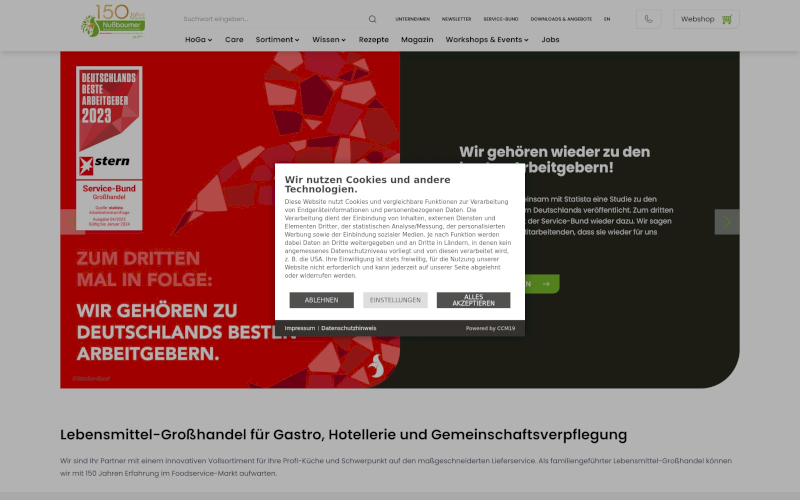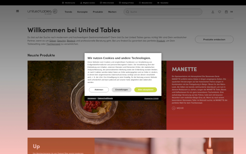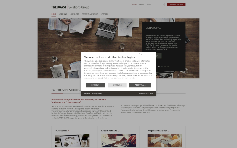 Das Herzstück von CCM19 für Ihre Gastronomie-Beratung Webseite, Onlineshop oder sonstige Applikation - der Cookie Banner für Gastronomie-Beratung. Mit diesem Banner realisieren Sie auf Ihrer Webseite die notwendige Zustimmung zum Setzen von diversen Cookies und zum ausführen von (Tracking)Skripten.