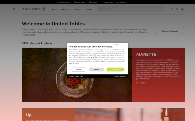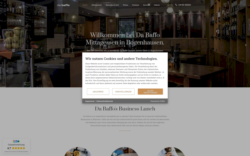 Das Herzstück von CCM19 für Ihre Gastronomie-Firmen Webseite, Onlineshop oder sonstige Applikation - der Cookie Banner für Gastronomie-Firmen. Mit diesem Banner realisieren Sie auf Ihrer Webseite die notwendige Zustimmung zum Setzen von diversen Cookies und zum ausführen von (Tracking)Skripten.