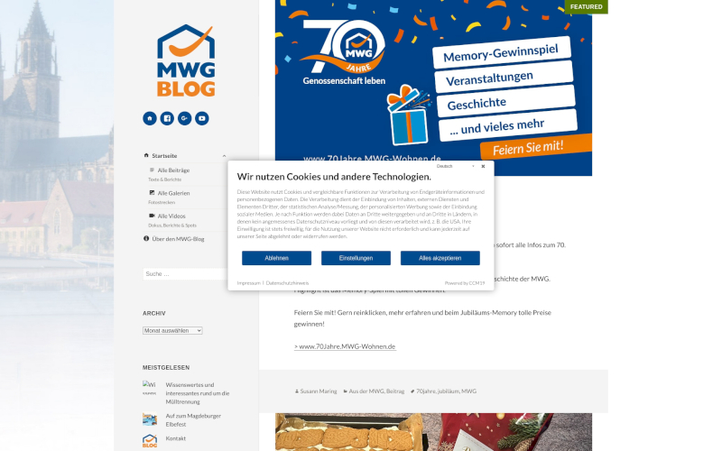 Entdecken Sie CCM19: Die Cookie Consent Manager-Lösung, maßgeschneidert für Gemeinnützige Wohnungsbaugesellschaften. Optimaler Datenschutz und erhöhte Zustimmungsraten erwarten Sie! Sichern Sie sich deutschsprachigen Support und Datenhaltung in Deutschland mit CCM19. Eine ideale Cookie Consent-Lösung für Ihre Branche, ohne Datenübertragung ins Ausland.