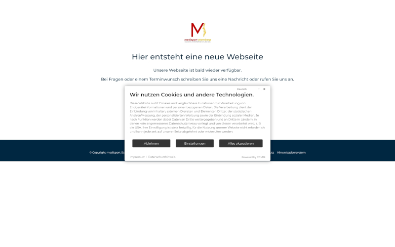 Entdecken Sie CCM19: Ihren maßgeschneiderten Cookie Consent Manager für Gesundheitszentren. Datenschutz optimiert! Erzielen Sie mehr Zustimmung von Ihren Besuchern - mit deutschem Support und ohne Datenübertragung ins Ausland. Perfekt für Ihr Zentrum!