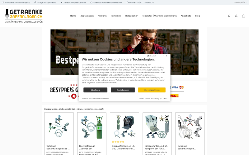Das Herzstück von CCM19 für Ihre Getränkehersteller Webseite, Onlineshop oder sonstige Applikation - der Cookie Banner für Getränkehersteller. Mit diesem Banner realisieren Sie auf Ihrer Webseite die notwendige Zustimmung zum Setzen von diversen Cookies und zum ausführen von (Tracking)Skripten.