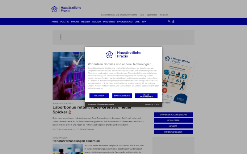 Entdecken Sie CCM19, den maßgeschneiderten Cookie Consent Manager speziell für Ihre Hausarztpraxis. Datenschutz optimiert & branchengerecht! Optimieren Sie mit CCM19 Ihre Zustimmungen - sicher, effektiv und auf Deutsch. Die perfekte Cookie-Lösung für Arztpraxen!