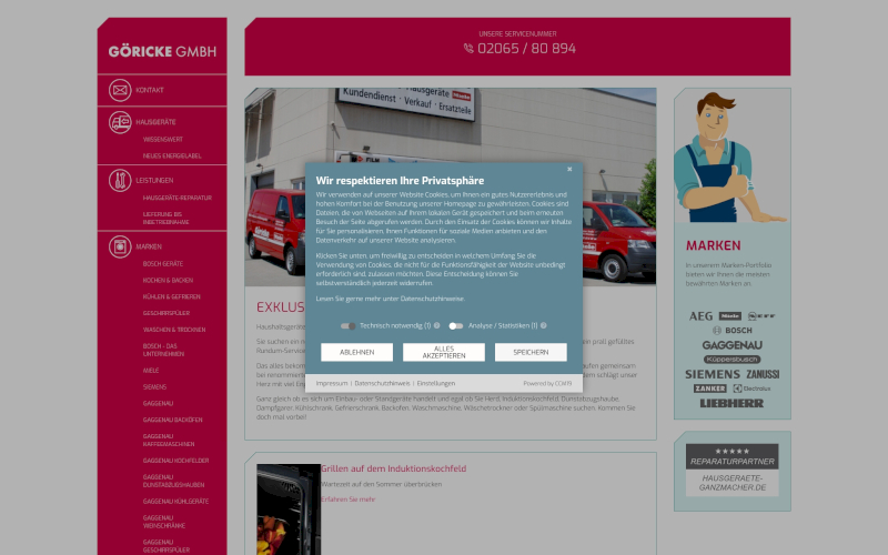 Cookie Banner für Haushaltsgeräte-Einzelhandel
