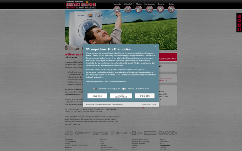Das Herzstück von CCM19 für Ihre Haushaltsgeräte-Einzelhandel Webseite, Onlineshop oder sonstige Applikation - der Cookie Banner für Haushaltsgeräte-Einzelhandel. Mit diesem Banner realisieren Sie auf Ihrer Webseite die notwendige Zustimmung zum Setzen von diversen Cookies und zum ausführen von (Tracking)Skripten.