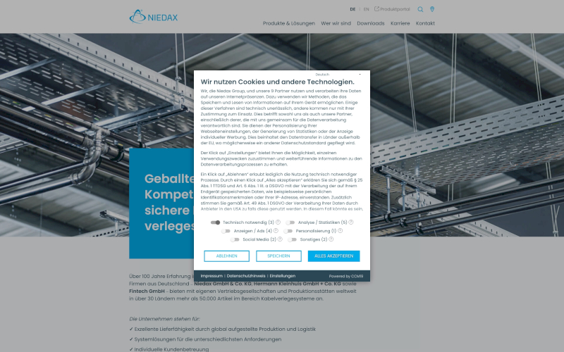 Cookie Consent Manager für Hersteller Bauprodukte