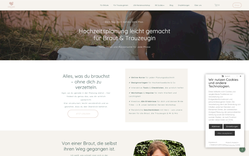 Mit CCM19, einem hochmodernen Cookie Consent Manager, können Sie sicherstellen, dass Ihre Webseite nicht nur die Anforderungen der Datenschutz-Grundverordnung (DSGVO) erfüllt, sondern auch die des Telekommunikation-Telemedien-Datenschutz-Gesetzes (TDDDG). Für Hochzeitsplaner bedeutet dies, dass Sie sich auf das konzentrieren können, was Sie am besten können - traumhafte Hochzeiten planen - während CCM19 sich um die Einhaltung der Datenschutzbestimmungen kümmert.