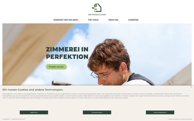 Schützen Sie Ihr Holzbauunternehmen vor rechtlichen Risiken und stärken Sie gleichzeitig das Vertrauen Ihrer Kunden. Wählen Sie CCM19 als Ihren Cookie Consent Manager und profitieren Sie von einer Lösung, die speziell auf die Anforderungen Ihrer Branche zugeschnitten ist.