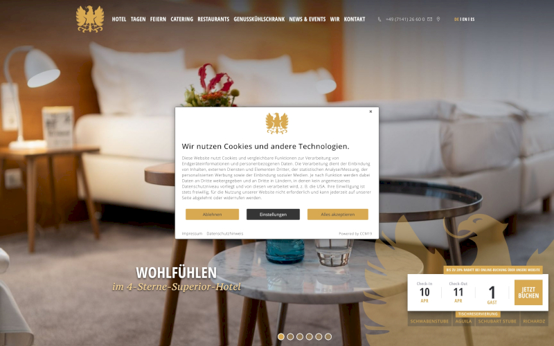 Entdecken Sie CCM19, den führenden Cookie Consent Manager für Hotels. Maßgeschneidert, um Ihre Datenschutzbedürfnisse zu erfüllen. Mehr Besucherzustimmung, echter Support und strikte Datensicherheit ohne Datenübertragung ins Ausland – nur mit CCM19.