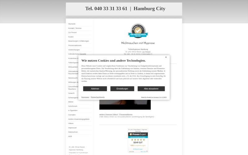 Entdecken Sie den optimalen Cookie Consent Manager für Ihre Hypnosetherapie Webseite