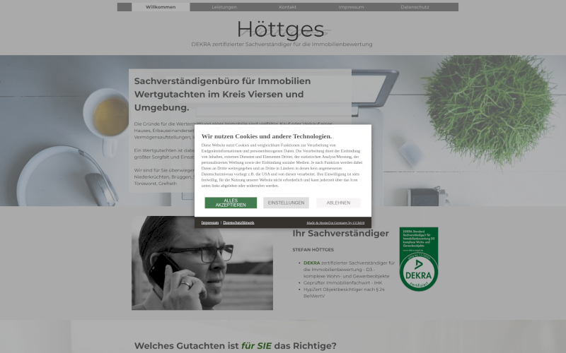 Cookie Banner für Immobilienbewertung