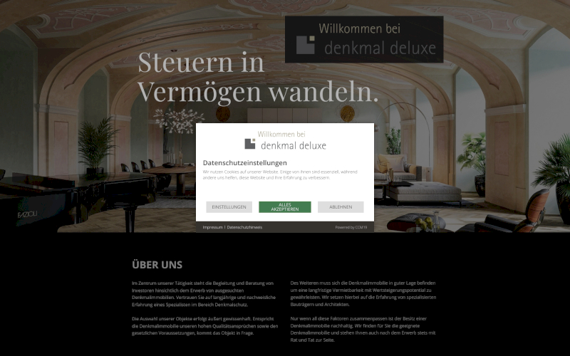 Entdecken Sie CCM19, den Cookie Consent Manager, maßgeschneidert für Immobilienunternehmen. Optimieren Sie jetzt Ihre Datenschutzpraxis! Mit CCM19 erhalten Sie mehr Zustimmungen und verstärken das Vertrauen Ihrer Website-Besucher. Entwickelt für Ihre Branche, mit sicherer Datenhandhabung innerhalb Deutschlands.