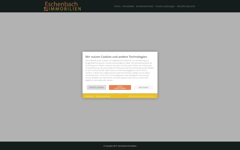 Das Herzstück von CCM19 für Ihre Immobilienverwaltung Webseite, Onlineshop oder sonstige Applikation - der Cookie Banner für Immobilienverwaltung. Mit diesem Banner realisieren Sie auf Ihrer Webseite die notwendige Zustimmung zum Setzen von diversen Cookies und zum ausführen von (Tracking)Skripten.