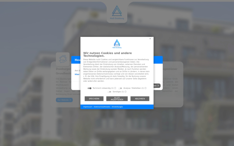 Cookie Banner für Immobilienverwaltung