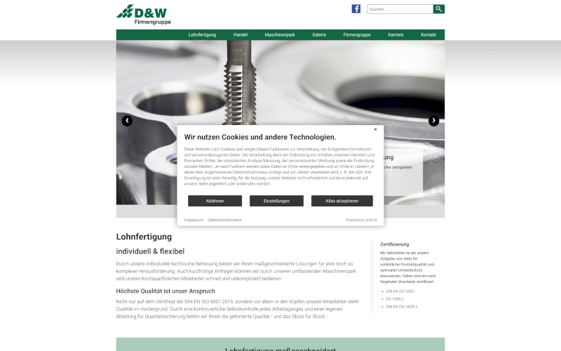 Das Herzstück von CCM19 für Ihre Industrieanlagenbau Webseite, Onlineshop oder sonstige Applikation - der Cookie Banner für Industrieanlagenbau. Mit diesem Banner realisieren Sie auf Ihrer Webseite die notwendige Zustimmung zum Setzen von diversen Cookies und zum ausführen von (Tracking)Skripten.