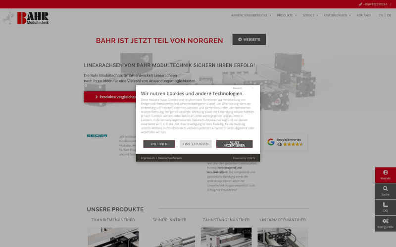 Profitieren Sie von unserem langjährigen Know-how und einer bewährten Technologie, die bereits von Tausenden von Seitenbetreibern vertrauensvoll eingesetzt wird. Wählen Sie CCM19 als Ihren Partner im Industrieanlagenbau, um Ihre Webpräsenz sicher, rechtskonform und benutzerfreundlich zu gestalten.