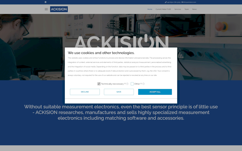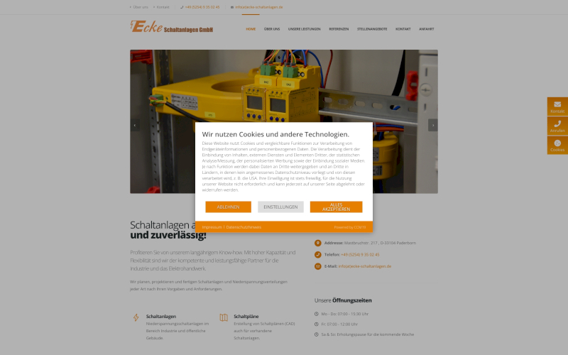 Das Herzstück von CCM19 für Ihre Industrieautomatisierung Webseite, Onlineshop oder sonstige Applikation - der Cookie Banner für Industrieautomatisierung. Mit diesem Banner realisieren Sie auf Ihrer Webseite die notwendige Zustimmung zum Setzen von diversen Cookies und zum ausführen von (Tracking)Skripten.