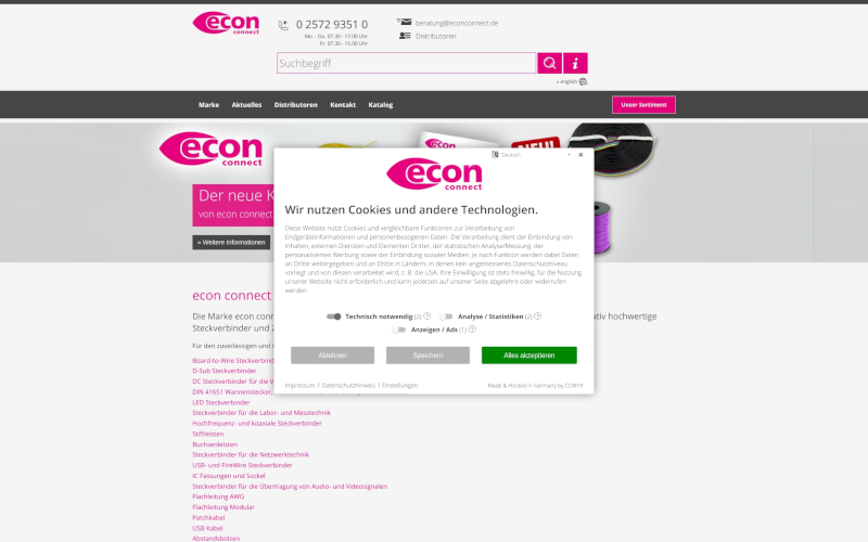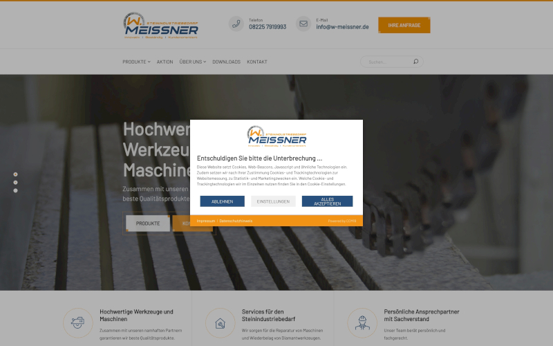 Das Herzstück von CCM19 für Ihre Industriebaufirmen Webseite, Onlineshop oder sonstige Applikation - der Cookie Banner für Industriebaufirmen. Mit diesem Banner realisieren Sie auf Ihrer Webseite die notwendige Zustimmung zum Setzen von diversen Cookies und zum ausführen von (Tracking)Skripten.
