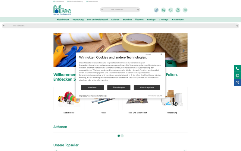 Das Herzstück von CCM19 für Ihre Industriebedarf Webseite, Onlineshop oder sonstige Applikation - der Cookie Banner für Industriebedarf. Mit diesem Banner realisieren Sie auf Ihrer Webseite die notwendige Zustimmung zum Setzen von diversen Cookies und zum ausführen von (Tracking)Skripten.