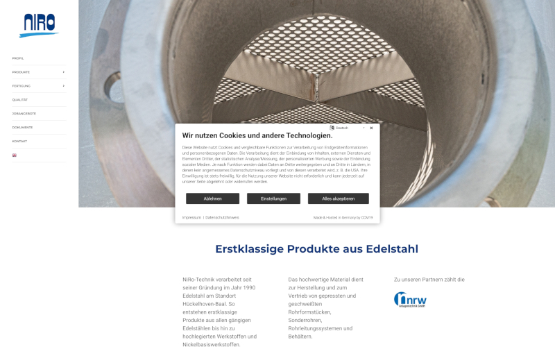 Das Herzstück von CCM19 für Ihre Industriedienstleistungen Webseite, Onlineshop oder sonstige Applikation - der Cookie Banner für Industriedienstleistungen. Mit diesem Banner realisieren Sie auf Ihrer Webseite die notwendige Zustimmung zum Setzen von diversen Cookies und zum ausführen von (Tracking)Skripten.