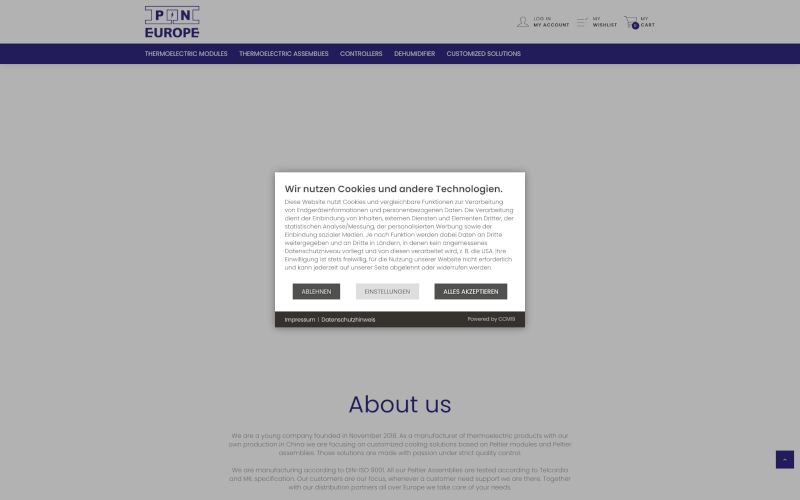 Das Herzstück von CCM19 für Ihre Industrieunternehmen Webseite, Onlineshop oder sonstige Applikation - der Cookie Banner für Industrieunternehmen. Mit diesem Banner realisieren Sie auf Ihrer Webseite die notwendige Zustimmung zum Setzen von diversen Cookies und zum ausführen von (Tracking)Skripten.