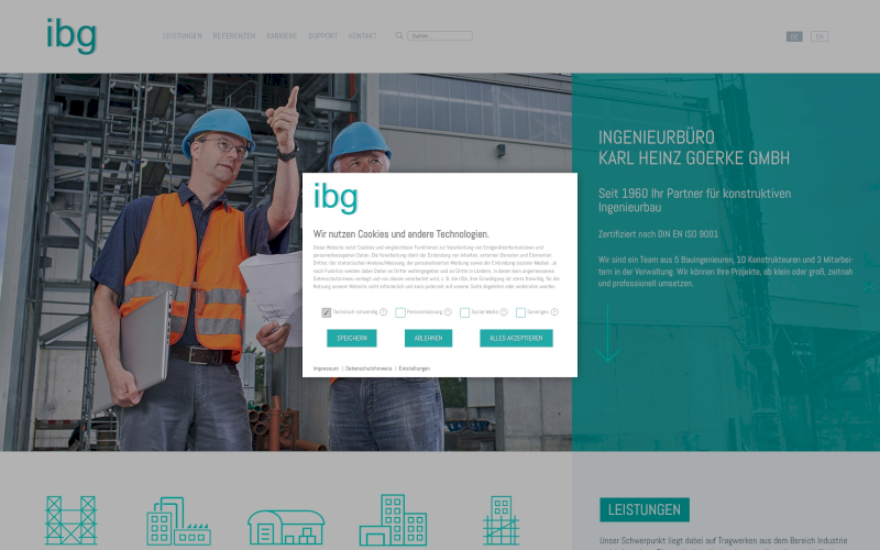 Das optimale Cookie Banner für Ingenieurbüros für Bauwesen