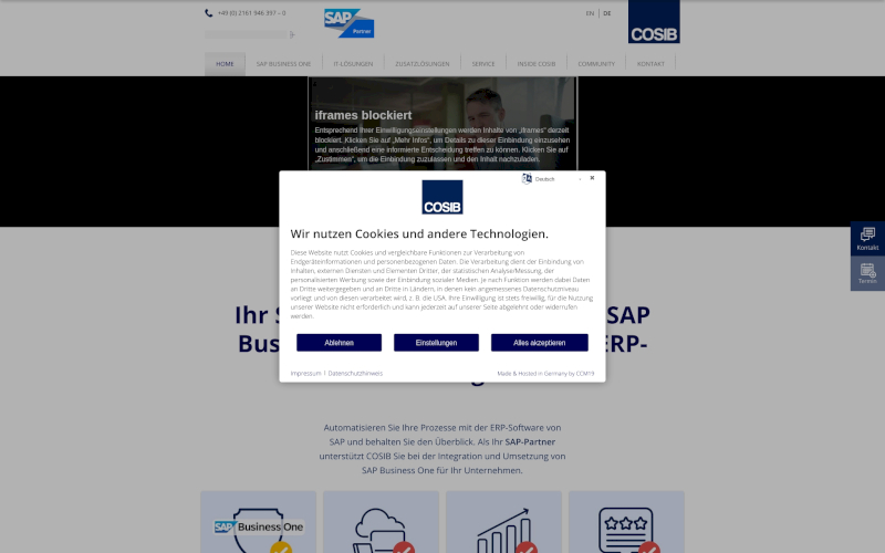Das Herzstück von CCM19 für Ihre IT-Dienstleister Webseite, Onlineshop oder sonstige Applikation - der Cookie Banner für IT-Dienstleister. Mit diesem Banner realisieren Sie auf Ihrer Webseite die notwendige Zustimmung zum Setzen von diversen Cookies und zum ausführen von (Tracking)Skripten.