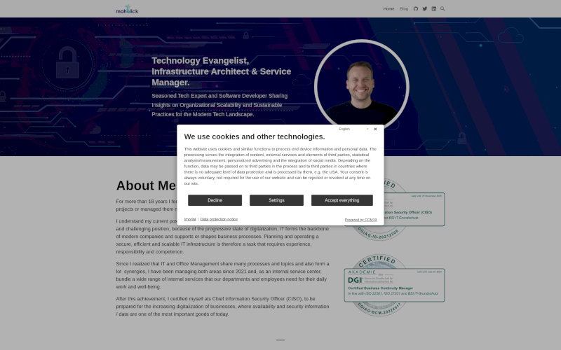 Entdecken Sie CCM19: Den führenden Cookie Consent Manager, speziell für IT-Sicherheit entwickelt. Optimieren Sie Datenschutz und Zustimmungen! Erhalten Sie mehr Besucher-Consents mit unserer unabhängigen, deutschen Lösung. Perfekt für OnPremise oder Cloud - ohne Datenübertragung ins Ausland. IT-Sicherheit mit CCM19.