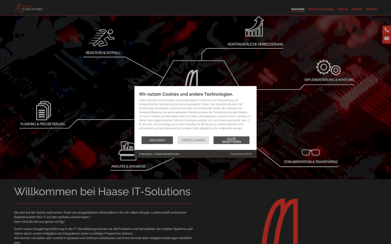 Das Herzstück von CCM19 für Ihre IT-Sicherheit Webseite, Onlineshop oder sonstige Applikation - der Cookie Banner für IT-Sicherheit. Mit diesem Banner realisieren Sie auf Ihrer Webseite die notwendige Zustimmung zum Setzen von diversen Cookies und zum ausführen von (Tracking)Skripten.